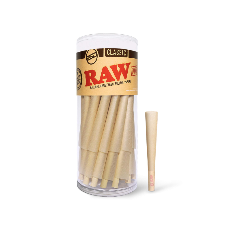RAW Cones 1-1/4 50 Pack Classic Rolling Papers make smoking easy, clean, and convenient. Crafted from natural, unbleached fibers, they deliver a slow and even burn every time. Moreover, each cone comes pre-rolled with tips, so you only need to fill, pack, and enjoy.